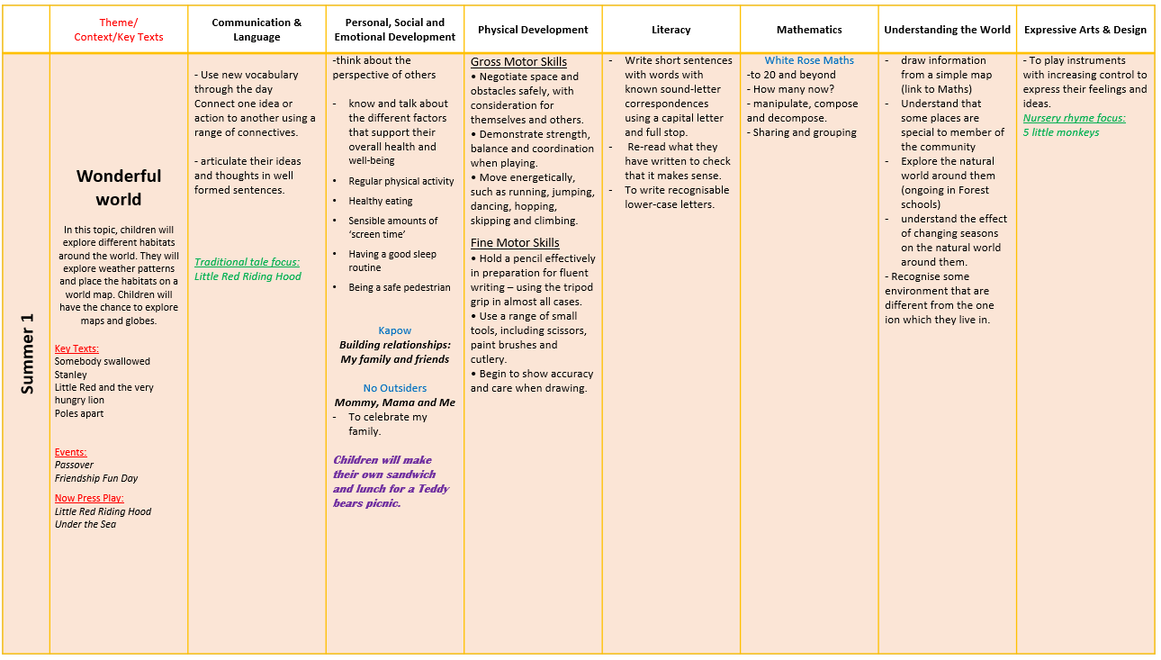Across the year, children explore rich themes—from celebrations, community and seasonal change, to lifecycles, habitats, helping roles and global awareness. Each topic is designed to broaden vocabulary, strengthen understanding and deepen curiosity. Daily opportunities for high‑quality interaction, purposeful play and direct teaching ensure that all children access the full curriculum and develop confidence, independence, resilience and a sense of belonging. Research underscores the value of clear, focused early curricula that emphasise essential content and avoid overloading young learners, which is why every element of our offer is planned with intention and clarity.