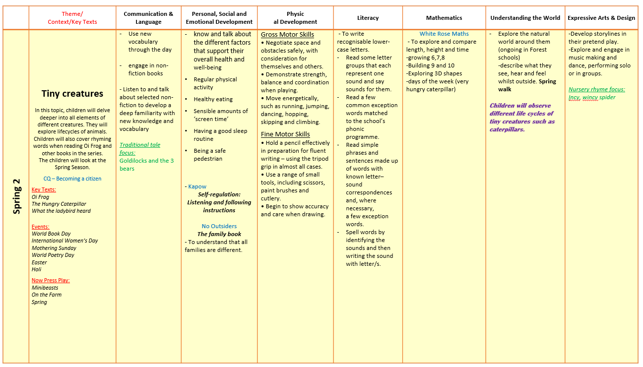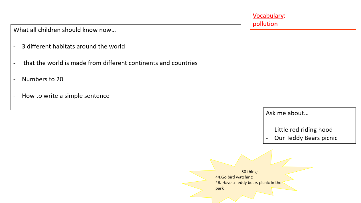 Across the year, children explore rich themes—from celebrations, community and seasonal change, to lifecycles, habitats, helping roles and global awareness. Each topic is designed to broaden vocabulary, strengthen understanding and deepen curiosity. Daily opportunities for high‑quality interaction, purposeful play and direct teaching ensure that all children access the full curriculum and develop confidence, independence, resilience and a sense of belonging. Research underscores the value of clear, focused early curricula that emphasise essential content and avoid overloading young learners, which is why every element of our offer is planned with intention and clarity.