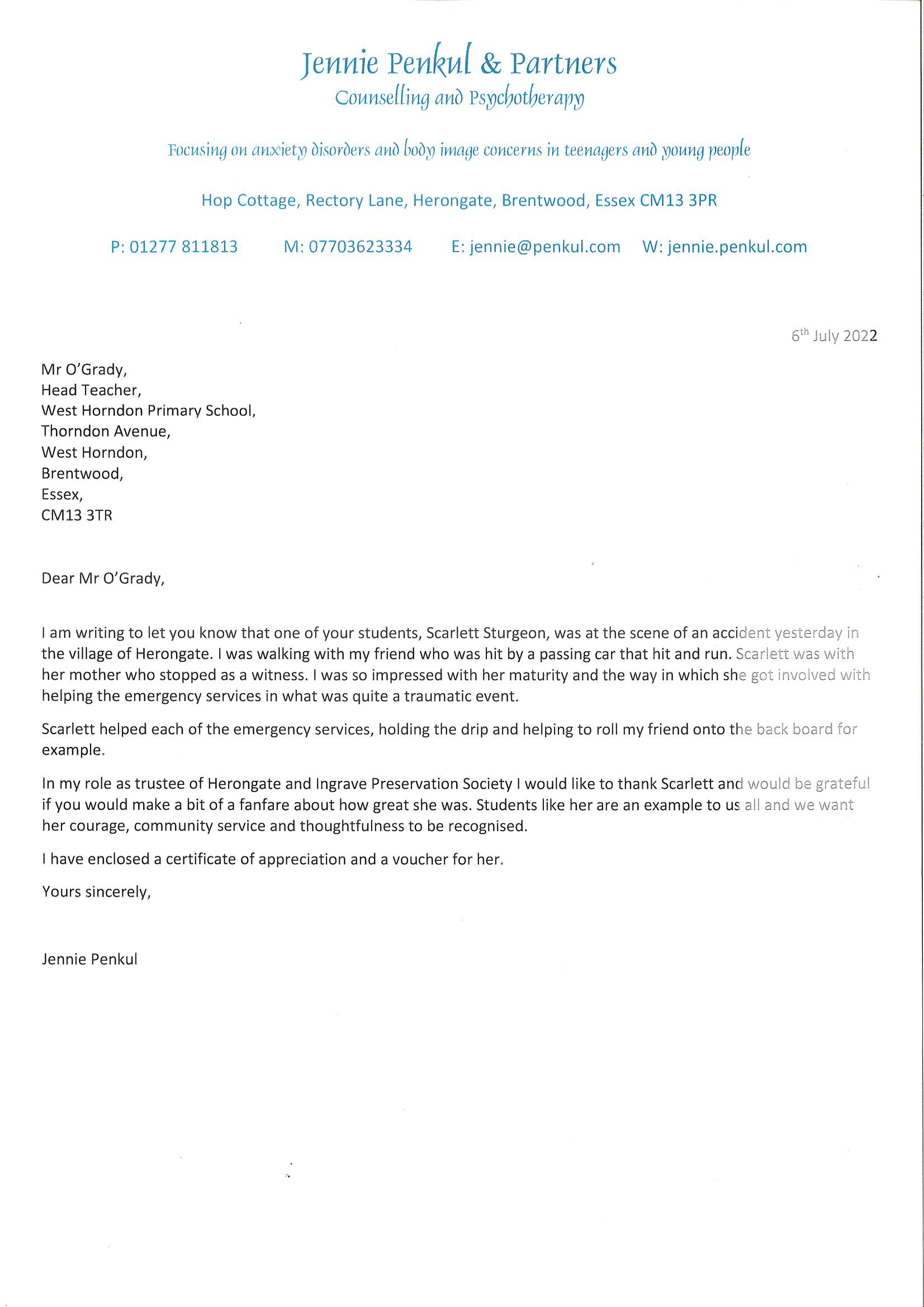 I have the pleasure in teaching a wide variety of children from all sorts of backgrounds and I am happy to say that memories of teaching your class from West Horndon will stay with me for a long time.
